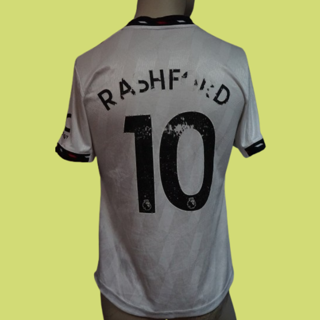 • Nome e número: Rashford #10, estampado nas costas com fonte oficial da Premier League