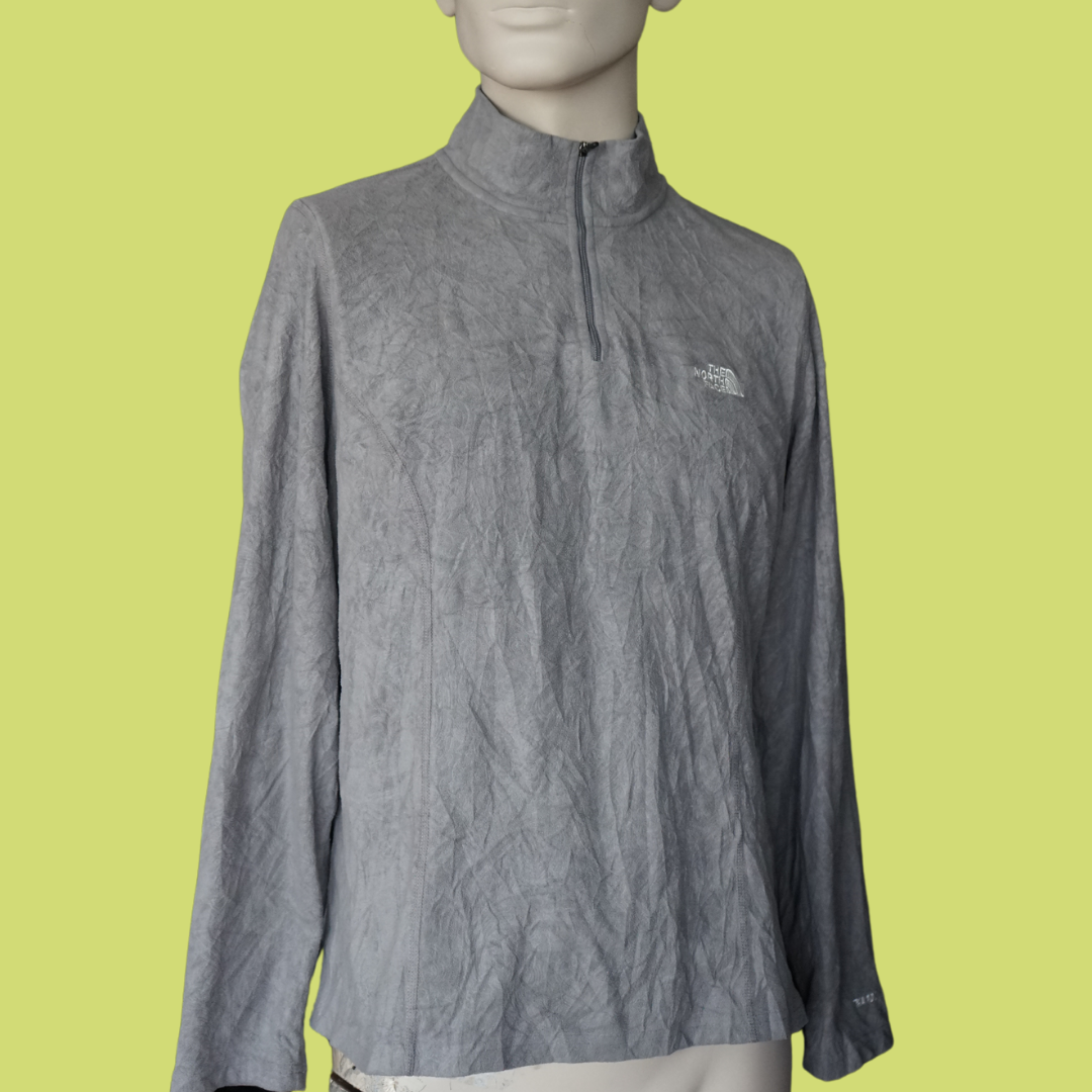 Mantém-te confortável e em movimento com esta camisola técnica cinza da The North Face, ideal para atividades ao ar livre ou para um look desportivo e casual nos dias mais frescos.