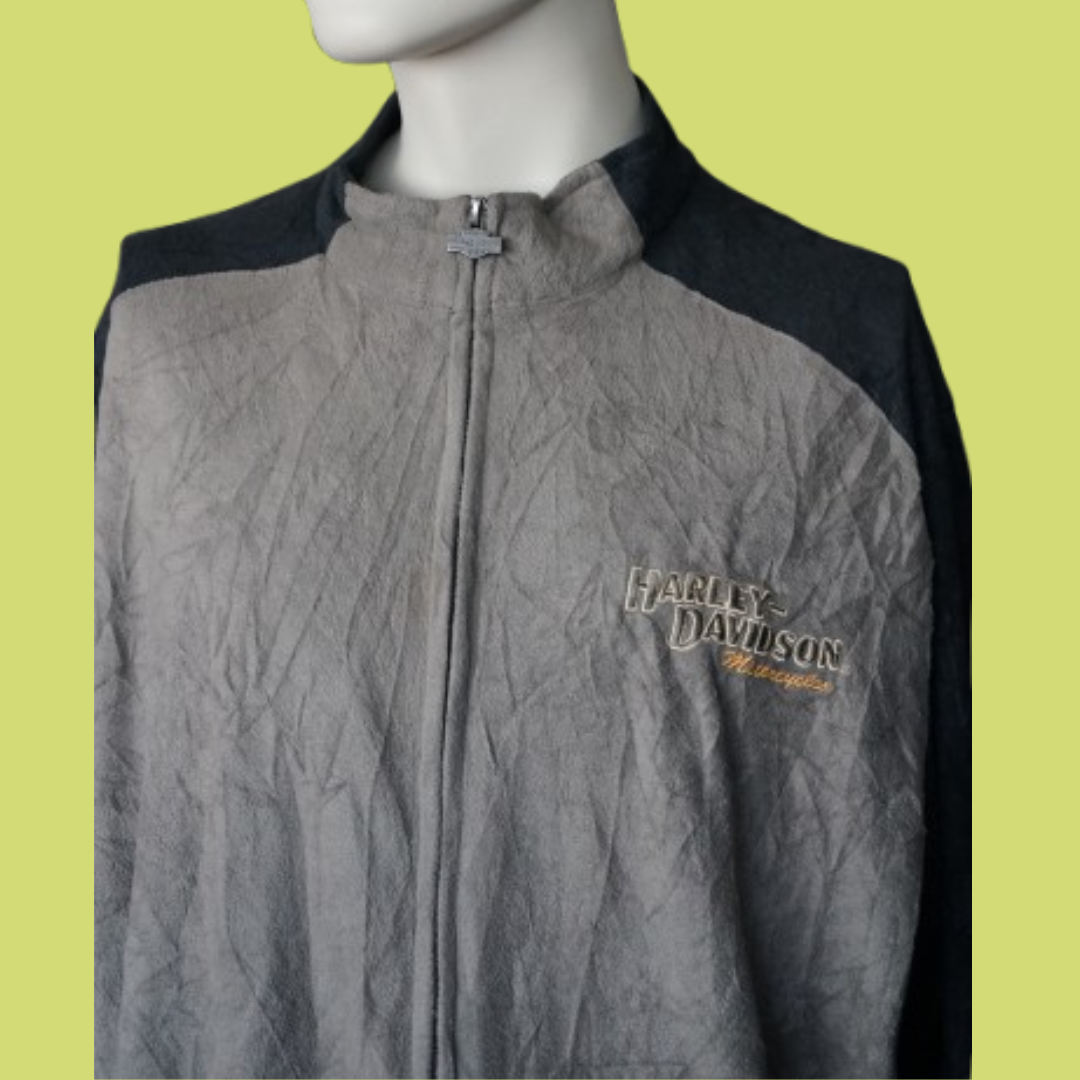 Dá um toque clássico e motard ao teu guarda-roupa com este casaco original Harley-Davidson. Com fecho frontal e corte desportivo, é ideal para dias frescos ou para um look casual com atitude. Feito em tecido tipo polar leve, combina conforto com estilo. Apresenta o logótipo bordado no peito, símbolo de qualidade e autenticidade da marca.