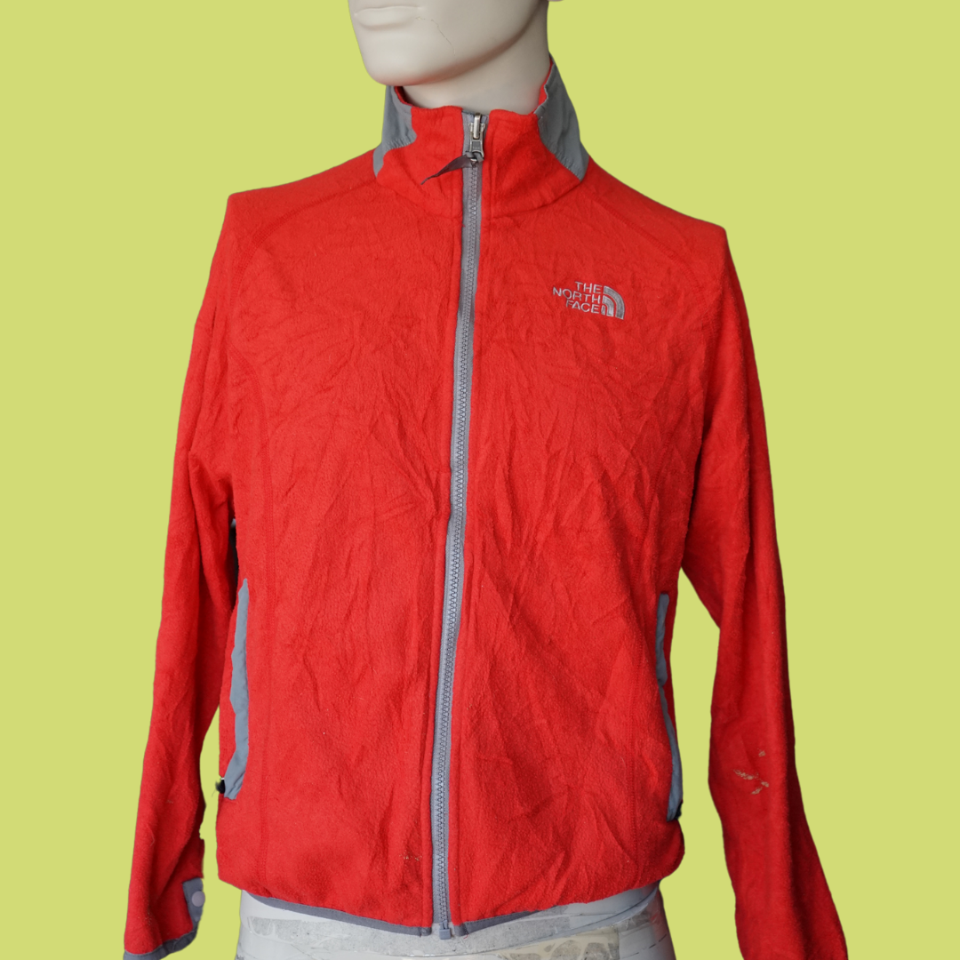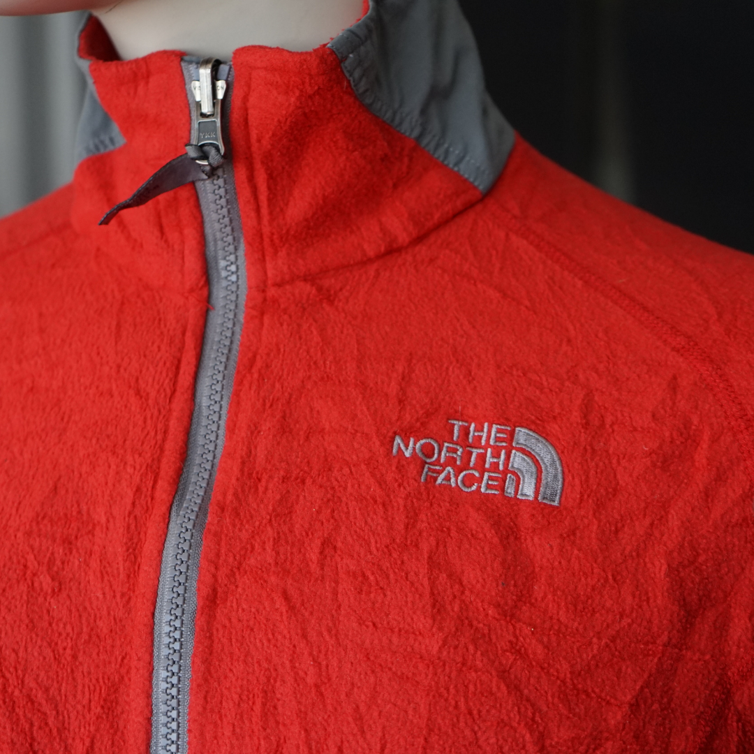 Este casaco polar feminino da The North Face combina conforto térmico com um design funcional e desportivo. De cor vermelha com detalhes em cinzento, é ideal para atividades ao ar livre, caminhadas ou uso diário em dias frios. Possui gola subida com proteção para o pescoço, fecho frontal integral e reforços nas zonas de maior atrito.