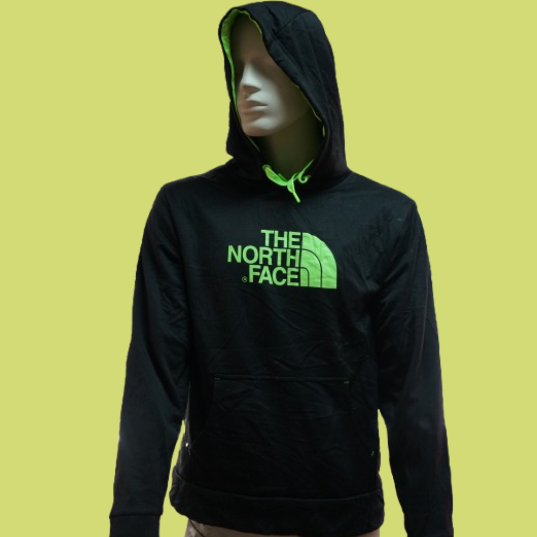 Traz um estilo urbano e descontraído com esta sweatshirt original da The North Face. Em cor preta com destaque para o logótipo e detalhes em verde fluorescente, esta camisola com capuz é ideal para os dias mais frescos ou para completar o teu look casual com um toque ousado. O interior do capuz forrado e o cordão ajustável proporcionam conforto extra, enquanto o bolso tipo canguru frontal garante praticidade no dia a dia.